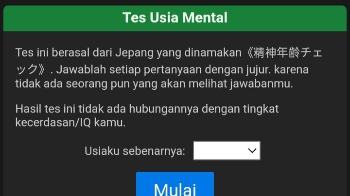 Tampilan untuk tes usia mental yang tengah viral arealme.com