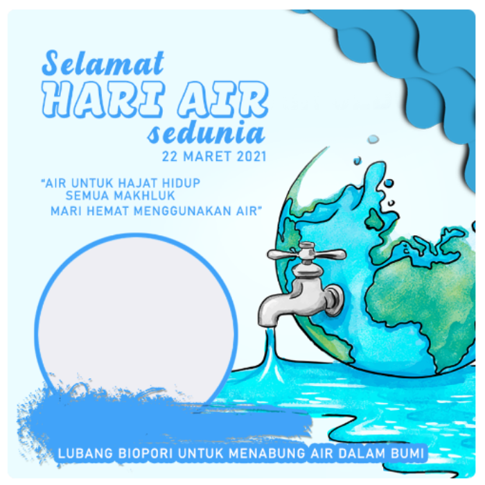 Melalui twibbon Hari Air Sedunia 2022 ini, Anda bisa membuat kartu ucapan yang berisi gambar bingkai, foto, dan tulisan secara digital.