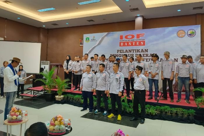 BANTENRAYA.COM – Sebanyak 45 orang Pengurus Daerah Indonesia Offroad Federation atau IOF Banten periode 2023-2027 resmi dilantik oleh Ketua Umum IOF Sam Budigusdian, di Horison TC UPI Serang, Kamis, 16 November 2023.