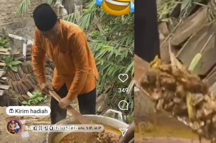 Dikutip Bantenraya.com dari akun Instagram @sanujipentamarta pada Senin 11 Desember 2023, Sanuji Pentamarta mengunggah video saat dirinya asik mengaduk masakan rabeg.