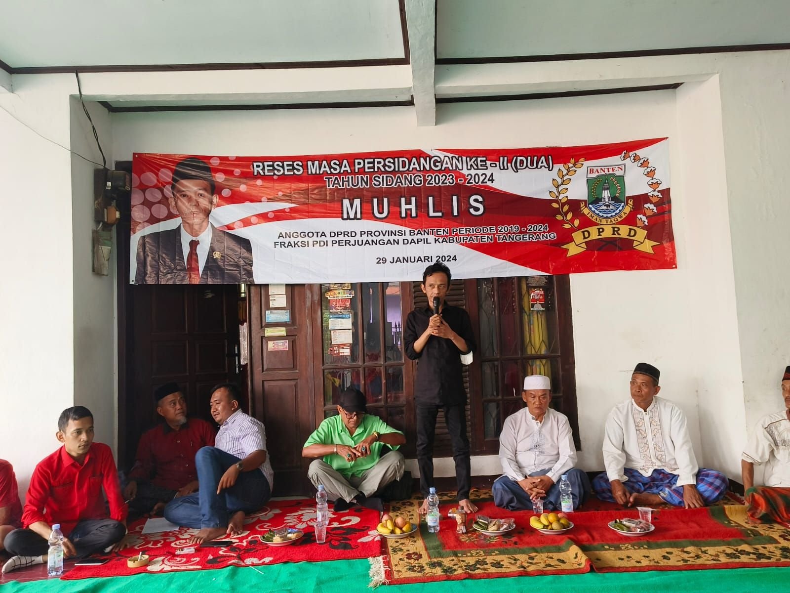 BANTENRAYA.COM – Anggota DPRD Provinsi Banten dari Fraksi PDI Perjuangan Muhlis menggelar reses masa persidangan ke II tahun 2023-2024. Kegiatan reses tersebut diadakan di Gang Mulyadinata, Kampung Candu RW 01, Serdang Wetan, Kecamatan Legok, Kabupaten Tangerang, pada Senin, 29 Januari 2024.
