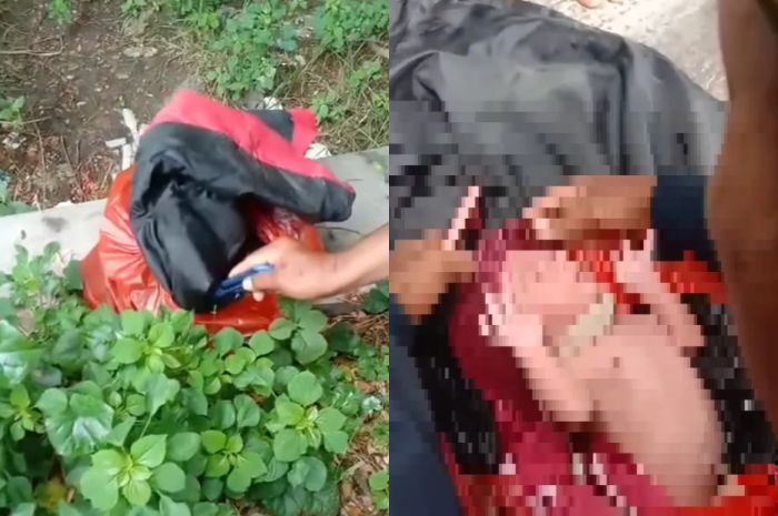 Sebuah bayi terbungkus dalam plastik merah ditemukan di pinggir jalan, menghebohkan warga sekitar.
