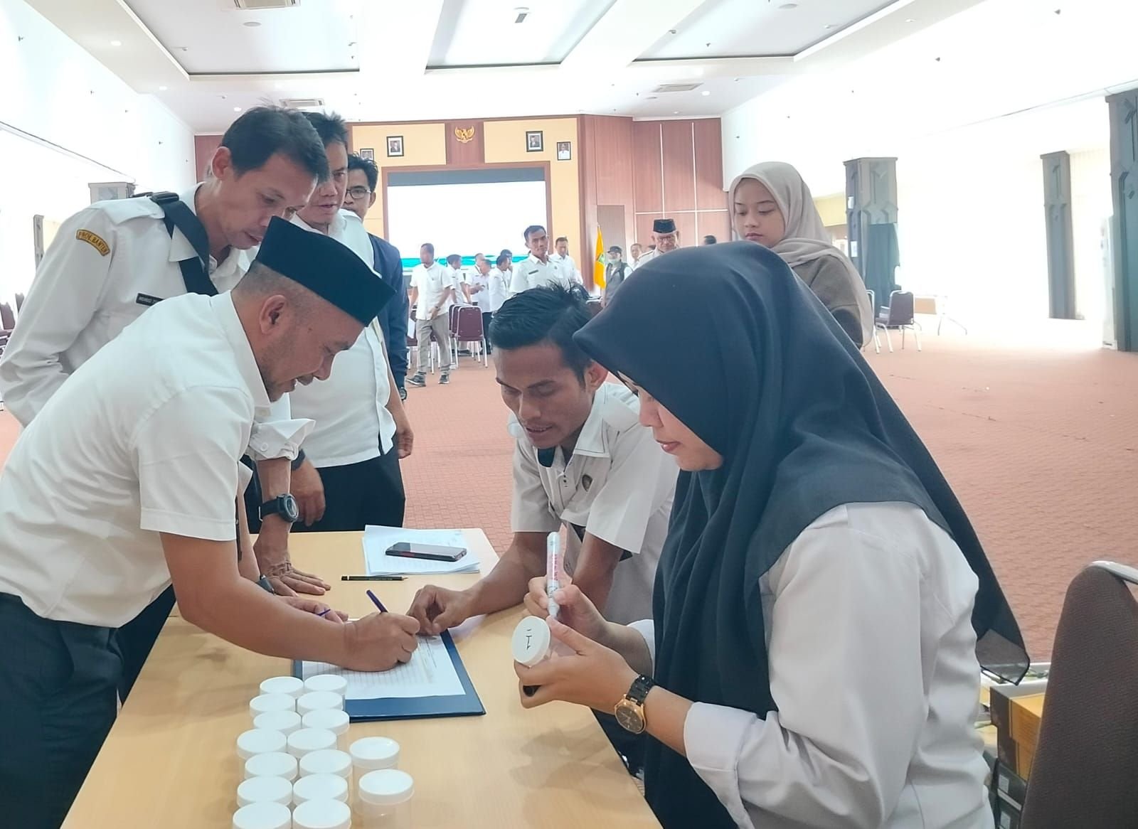 Tes urine tersebut dilakukan setelah kegiatan Rapat Koordinasi Program Kecamatan dan Kelurahan Bersih dari Narkotika atau Bersinar yang digelar di Aula Diskominfo Kota Cilegon pada Rabu, 7 Februari 2024.