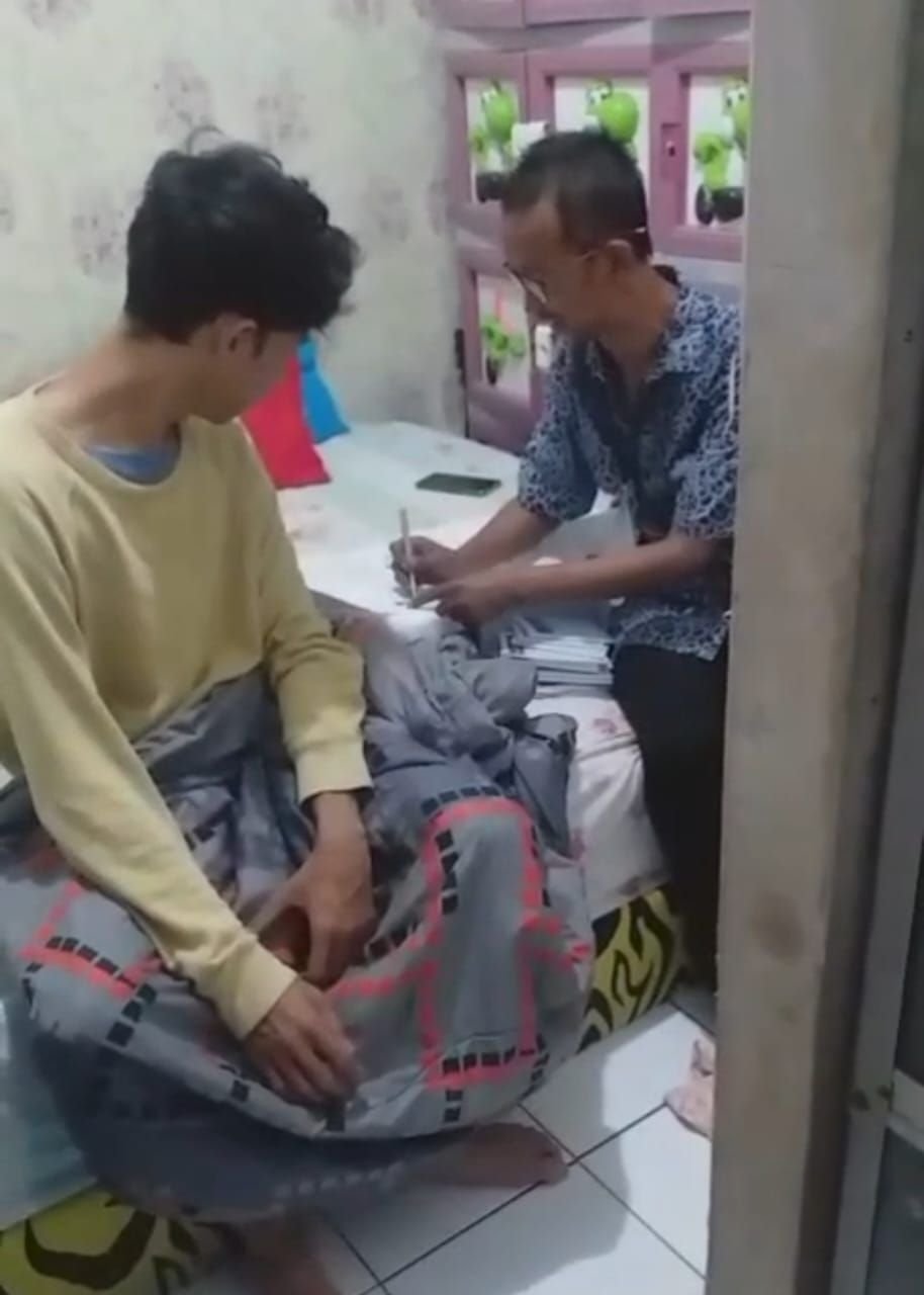 Dalam video petugas KPPS yang berbaju batik tersebut tampak mendatangi secara langsung rumah pemilih tersebut dengan membawa surat suara.