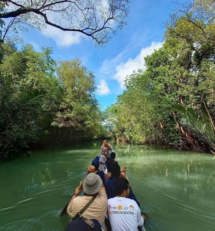 Pengunjung dapat menikmati keindahan alam sambil menjelajahi labirin sungai-sungai kecil yang meliuk-liuk di antara pepohonan mangrove yang tinggi.