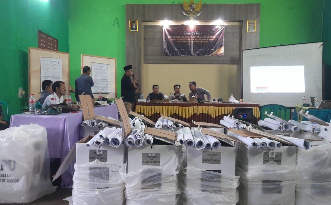 Potret saat petugas PPK dan KPPS di Kecamatan Gunungkencana melakukan rekapitulasi di Kantor Kecamatan Sahrul/Banten Raya