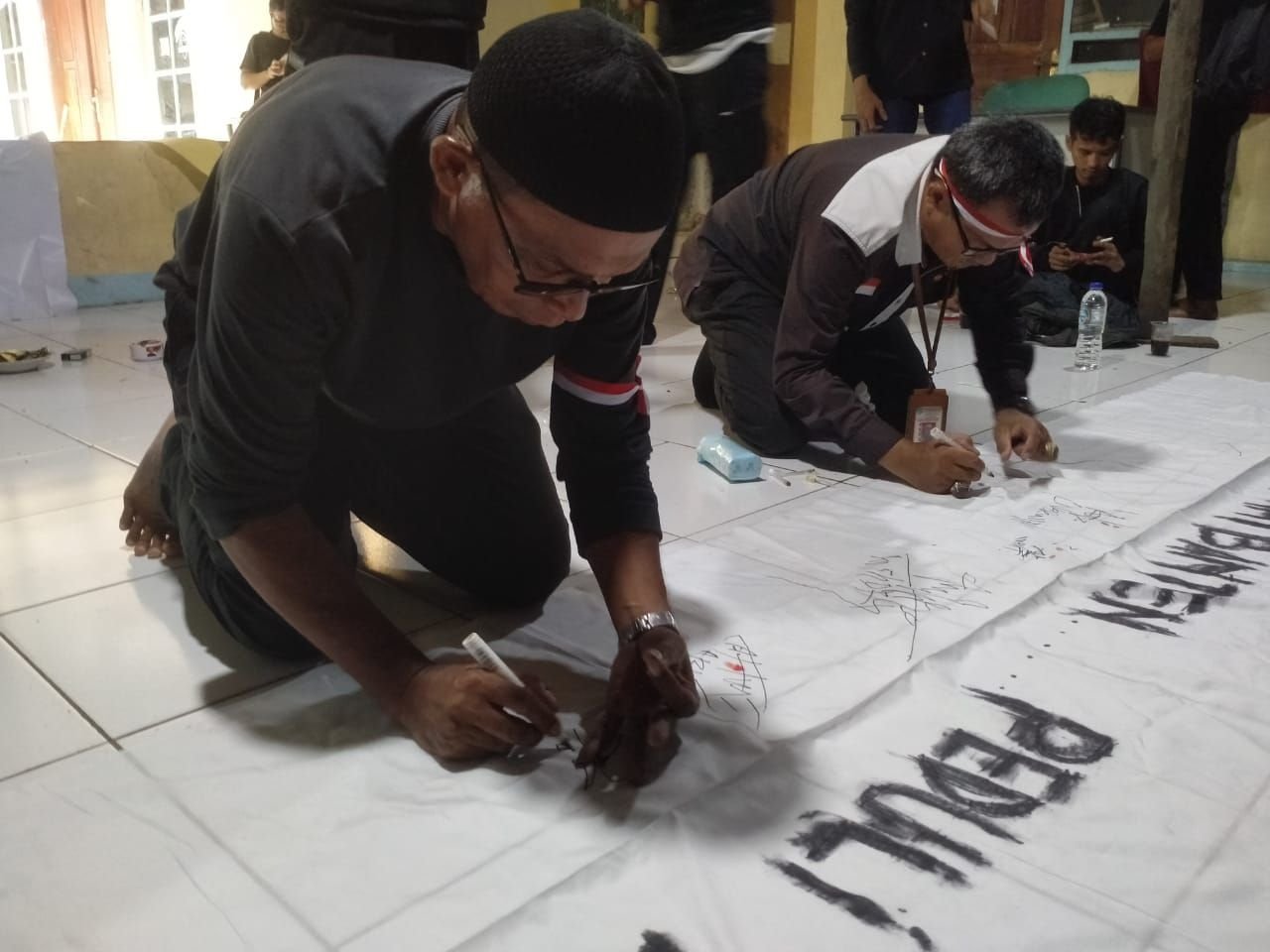Gerakan Rakyat Banten Peduli Demokrasi membubuhkan cap jempol darah dan tanda tangan sebagai bentuk protes terhadap kecurangan Pilpres 2024. Harir Baldan/Bantenraya.com