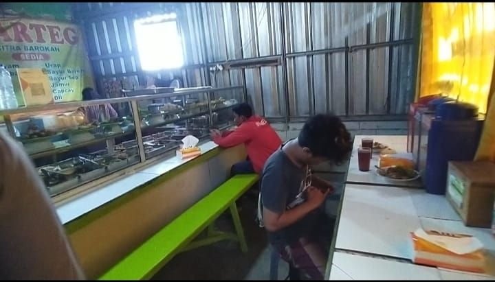Di dalam Warteg yang berlokasi di depan Perumahan Citra Gading, Jalan Serang-Petir, Kelurahan Cipocok Jaya, Kecamatan Cipocok Jaya, Kota Serang, ada dua orang pembeli yang sedang makan di tempat.