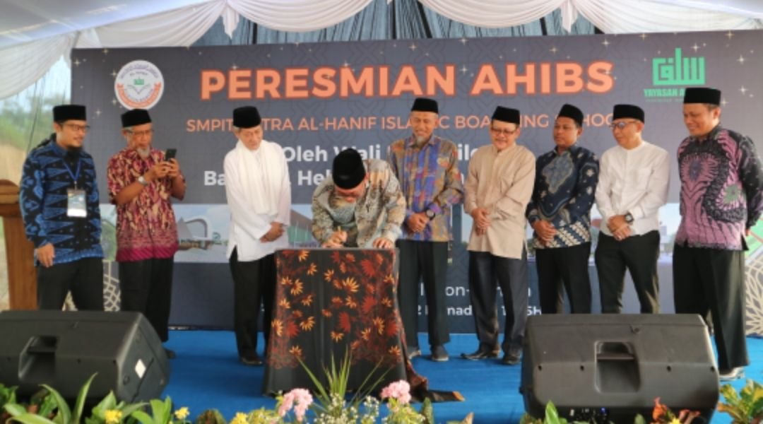 Peresmian boarding school yang bernaung di bawah Yayasan Al Hanif Cilegon ini ditandai dengan penandatanganan prasasti oleh Wali Kota Cilegon Helldy Agustian.
