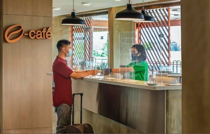 Karyawan Hotel Swiss-Belexpress Cilegon saat melayani pengunjung di E-Cafe. Dokumentasi pribadi