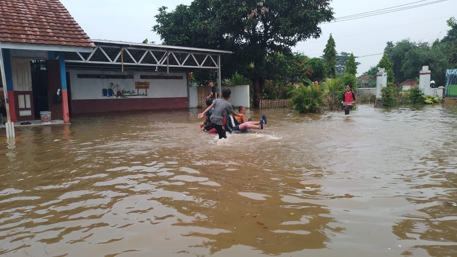 Ia mengungkapkan, hujan yang terjadi selama semalaman mengakibatkan luapan besar, sehingga sekolah, rumah dan pesawahan ikut terendam banjir.