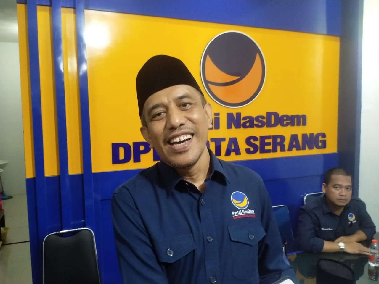 Ketua DPD Partai NasDem Kota Serang Roni Alfanto saat diwawancarai wartawan di kantor DPD Partai NasDem Kota Serang, Selasa 7 Mei 2024. Harir Baldan/Bantenraya.com