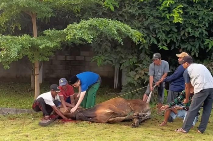 Pria yang juga kerap disapa Dewan Viral ini sudah terbiasa memotong hewan kurban sendiri sejak 10 tahun lalu.