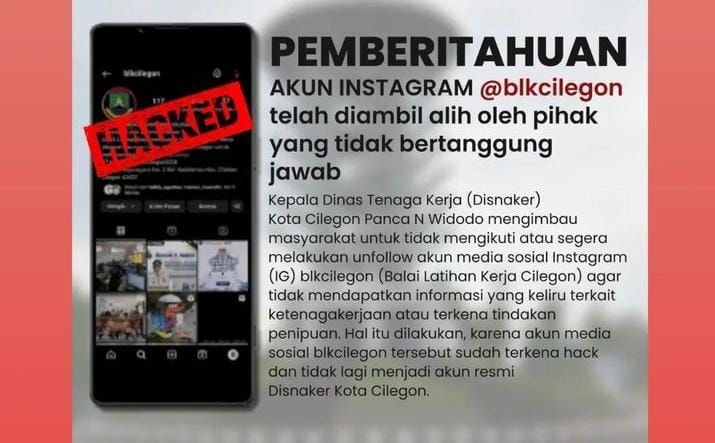“Kami sudah menyampaikan kepada masyarakat Kota Cilegon bahwa akun media sosial IG @blkcilegon sudah tidak kami aktifkan dan gunakan sejak terkena hack (retas-red),” katanya, Minggu 23 Juni 2024.