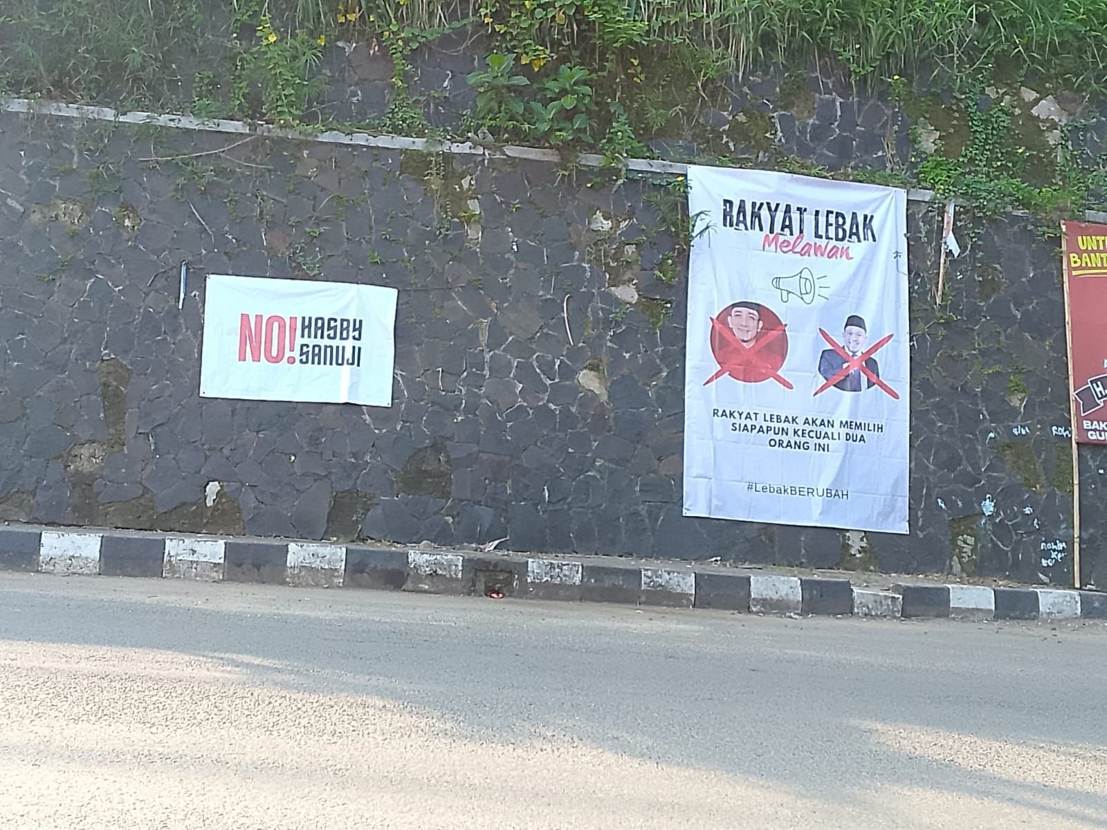 “Rakya Lebak akan memilih siapapun kecuali dua orang ini,” tertulis dalam spanduk.