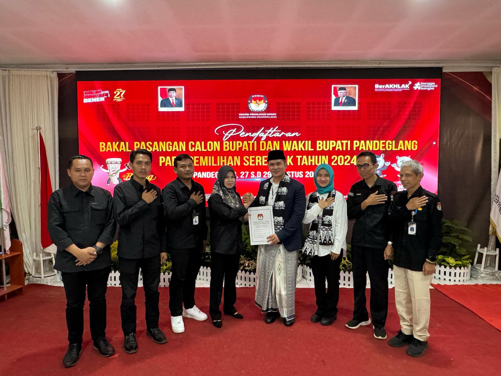 Paslon Bupati, dan Wakil Bupati Pandeglang, Fitron Nur Ikhsan, dan Diana Jayabaya menyerahkan berkah pendaftaran Pilkada kepada KPU Pandeglang, Rabu 28 Agustus 2024.