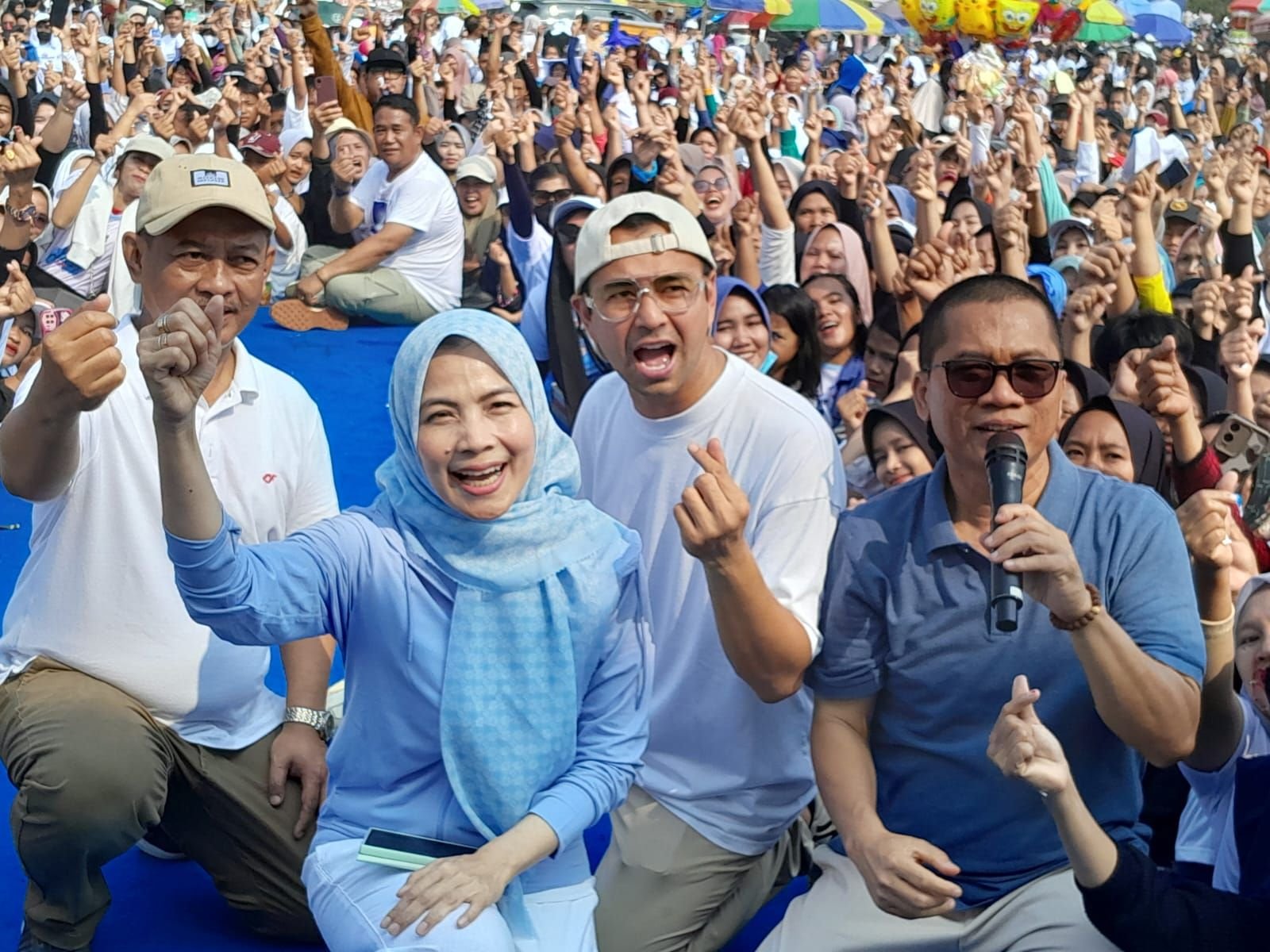Kehadiran Raffi Ahmad ke Kabupaten Serang untuk mensosialisasikan Zakiyah-Najib yang menggelar senam pagi dengan ribuan warga di lapangan Doser, Desa Ranca Sumur, Kecamatan Kopo, Rabu 4 September 2024.