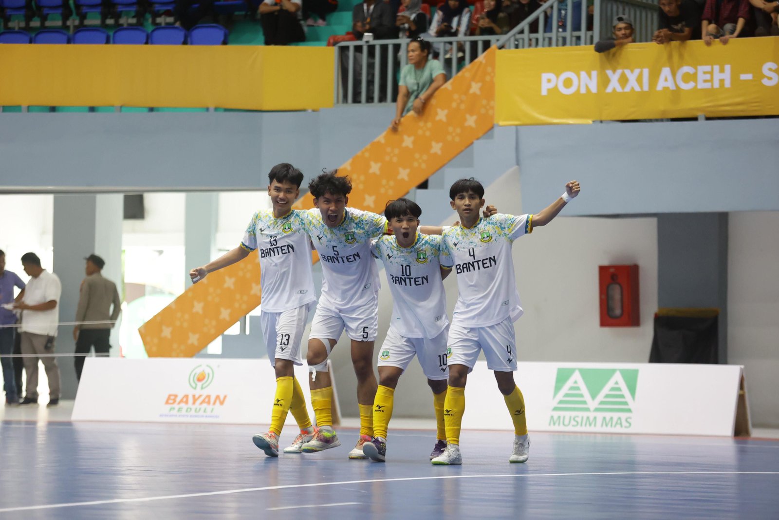 BANTEN RAYA.COM – Tim futsal Banten berhasil menyegel tiket babak semifinal futsal di PON Aceh dan Sumatera Utara. Berlaga di GOR Disporasu, Medan, Banten berhasil mengalahkan Papua Pegunungan di babak penyisihan grup B dengan skor 3-1. Kememenangan ini membuat Banten menyegel tiket semifinal. Satu tiket semifinal lainnya diraih oleh Kalimantan Timur yang berhasil menang 5-2 atas Aceh.