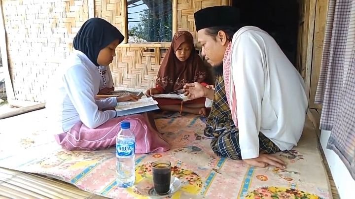 Keseharian Sarif sebagai guru ngaji anak-anak dihabiskannya di Kampung Sari Mulya, Desa Jayasari, Kecamatan Cimarga, Kabupaten Lebak.