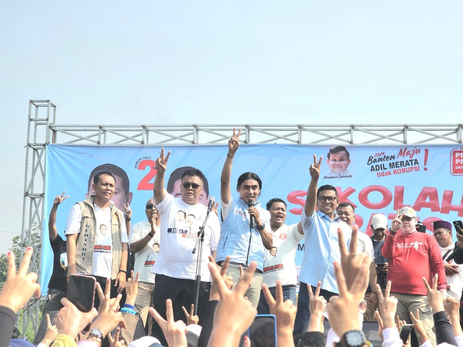 “Sebagai seorang calon Gubernur saya tidak cuma pajang-pajang muka. Yang saya pajang adalah ide atau gagasan salah satu gagasan saya adalah Sekolah Gratis SMA/ SMK/ MA negeri dan swasta di Provinsi Banten,” kata Andra Soni.