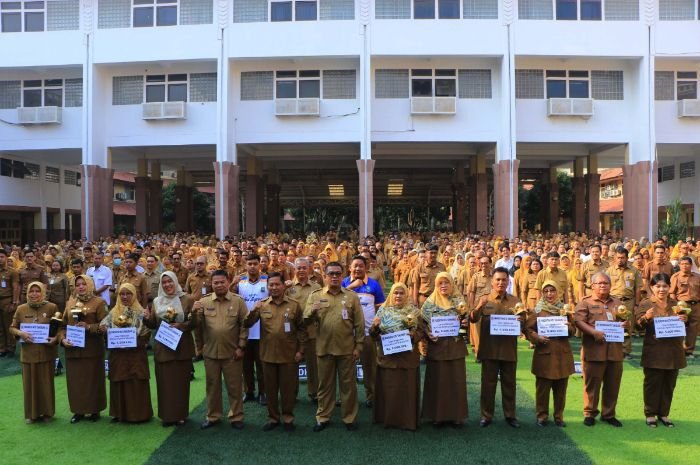 Sekretaris Daerah (Sekda) Kota Tangerang, Herman Suwarman, angkat suara saat apel pagi di Plaza Pusat Pemerintahan Kota Tangerang, Senin, 7 Oktober 2024.