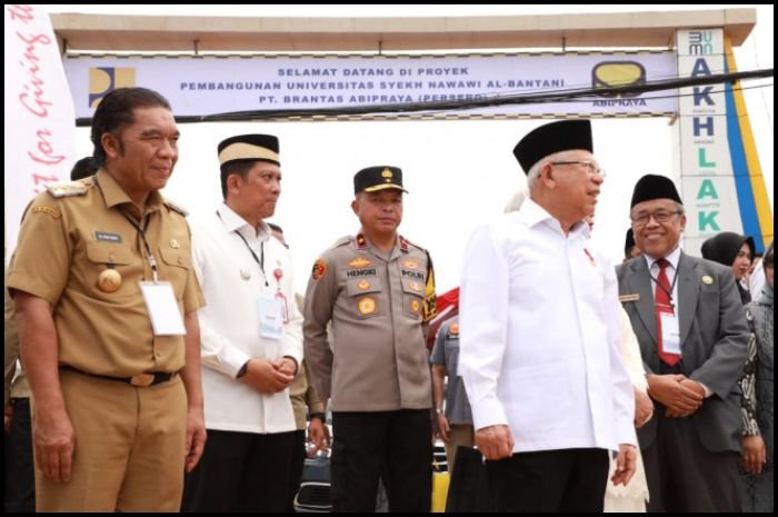 BANTENRAYA.COM – Penjabat (Pj) Gubernur Banten, Al Muktabar dan Pj Bupati Tangerang, Andi Ony, mendampingi Wakil Presiden RI Ma’ruf Amin dalam acara pencanangan pembangunan Universitas Syekh Nawawi Banten.