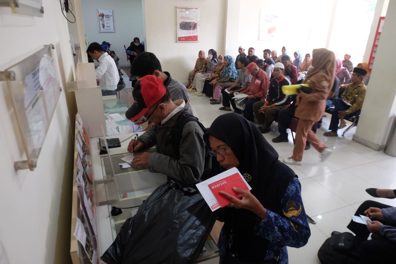 Sejumlah nasabah antre untuk mengambil uang di kantor KCK Bank Banten, Kota Serang, Senin 28 Oktober 2024. Doni Kurniawan/Bantenraya.com