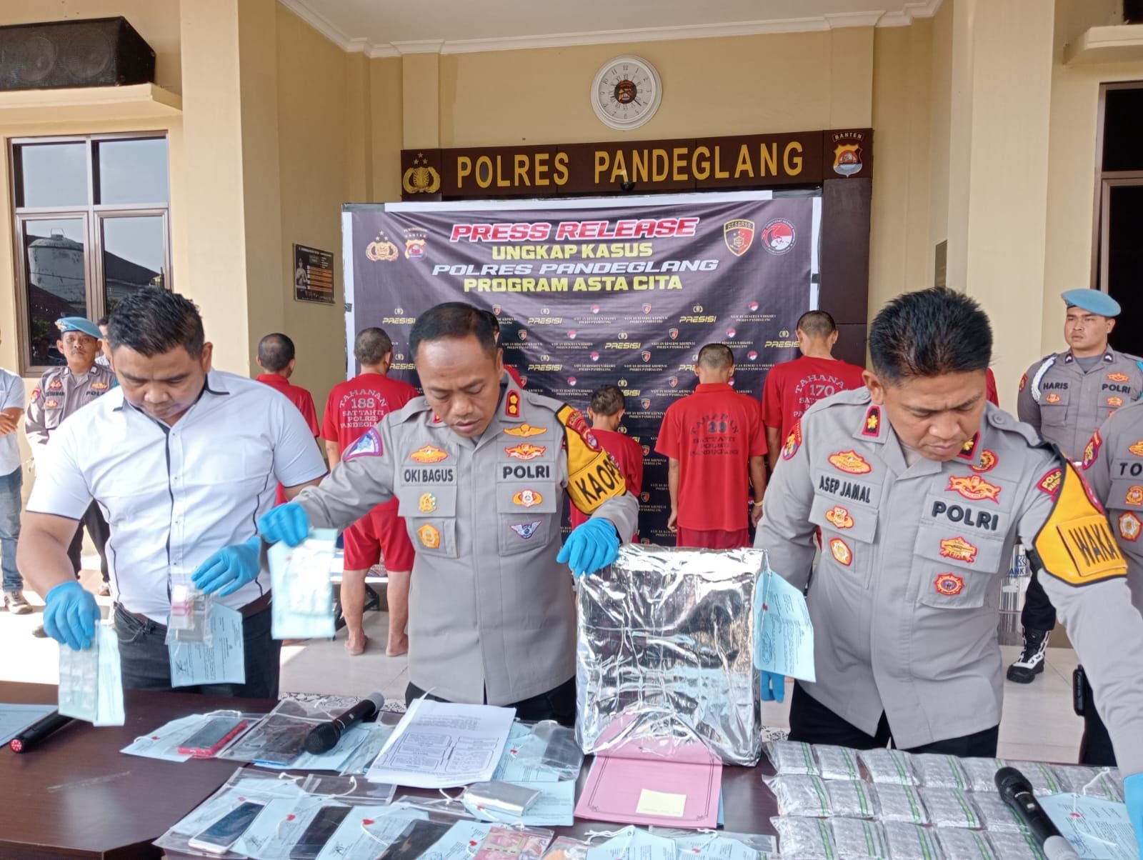 “Pengungkapan kasus ini sejak dimulainya program prioritas pemerintah ASTA CITA. Hasilnya, kita mengamankan para pengedar narkotika yang beroperasi di wilayah hukum Polres Pandeglang,” tegas polisi berpangkat dua melati ini, saat gelar perkara di Mapolres Pandeglang, Rabu 13 November 2024.