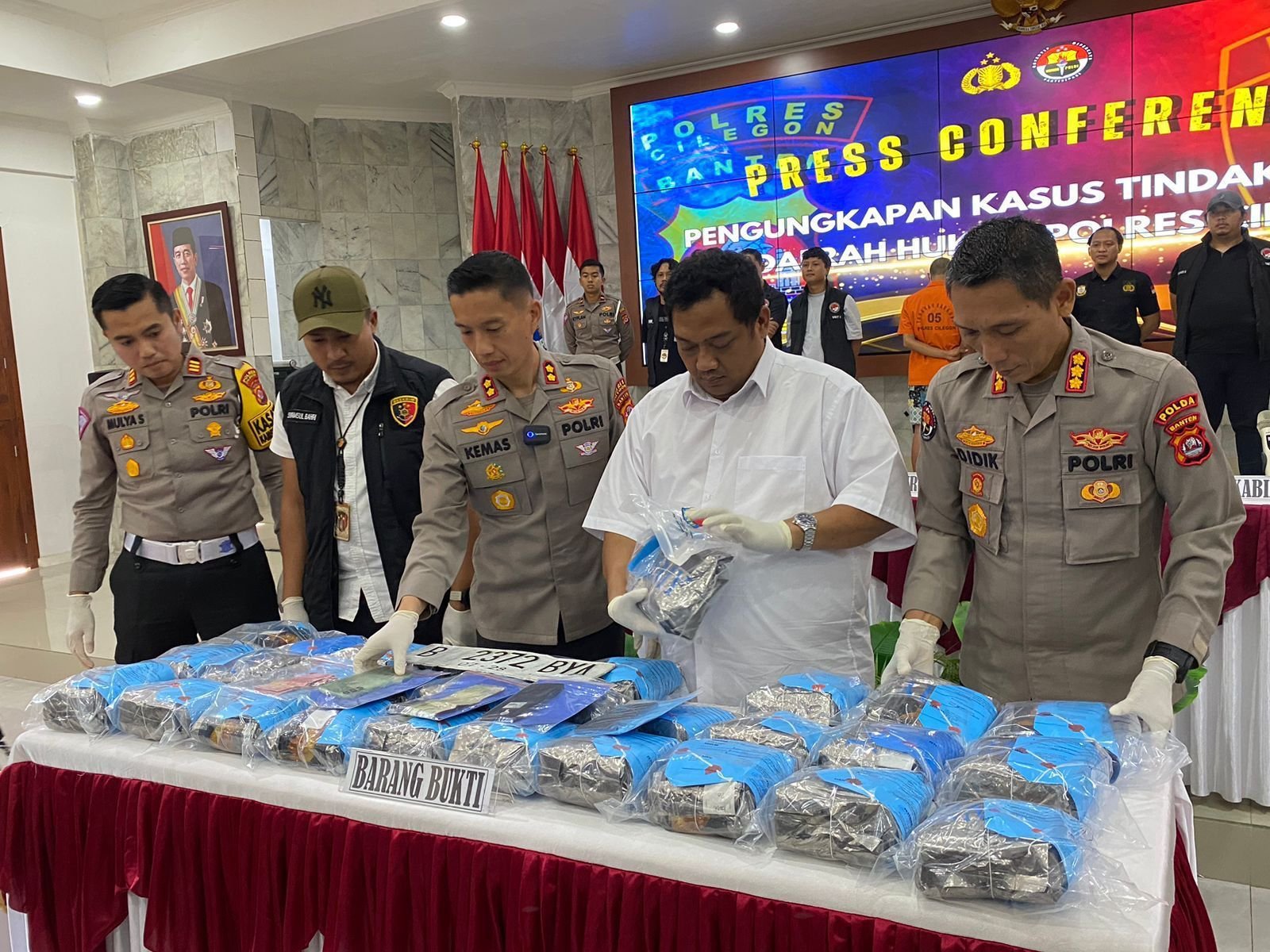 Adapun barang bukti narkoba dengan berbagai macam jenisnya telah diamankan oleh Polres Cilegon, yakni sabu sebanyak 33.817,92 gram, ganja sebanyak 54.165,82 gram, obat sebanyak 15.596 butir, dan sinte sebanyak 41,72 gram.