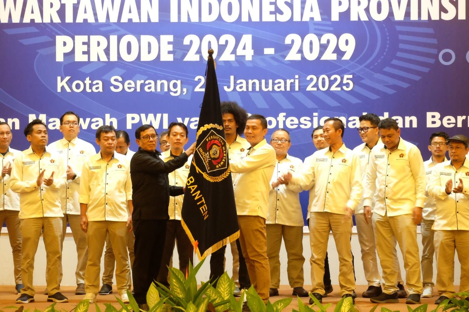 Demikian disampaikan Ketua PWI Banten Mashudi saat sambutan usai Pelantikan Pengurus PWI Provinsi Banten Periode 2024-2029 di Hotel Ultima Ratu Serang, Selasa 21 Januari 2025.