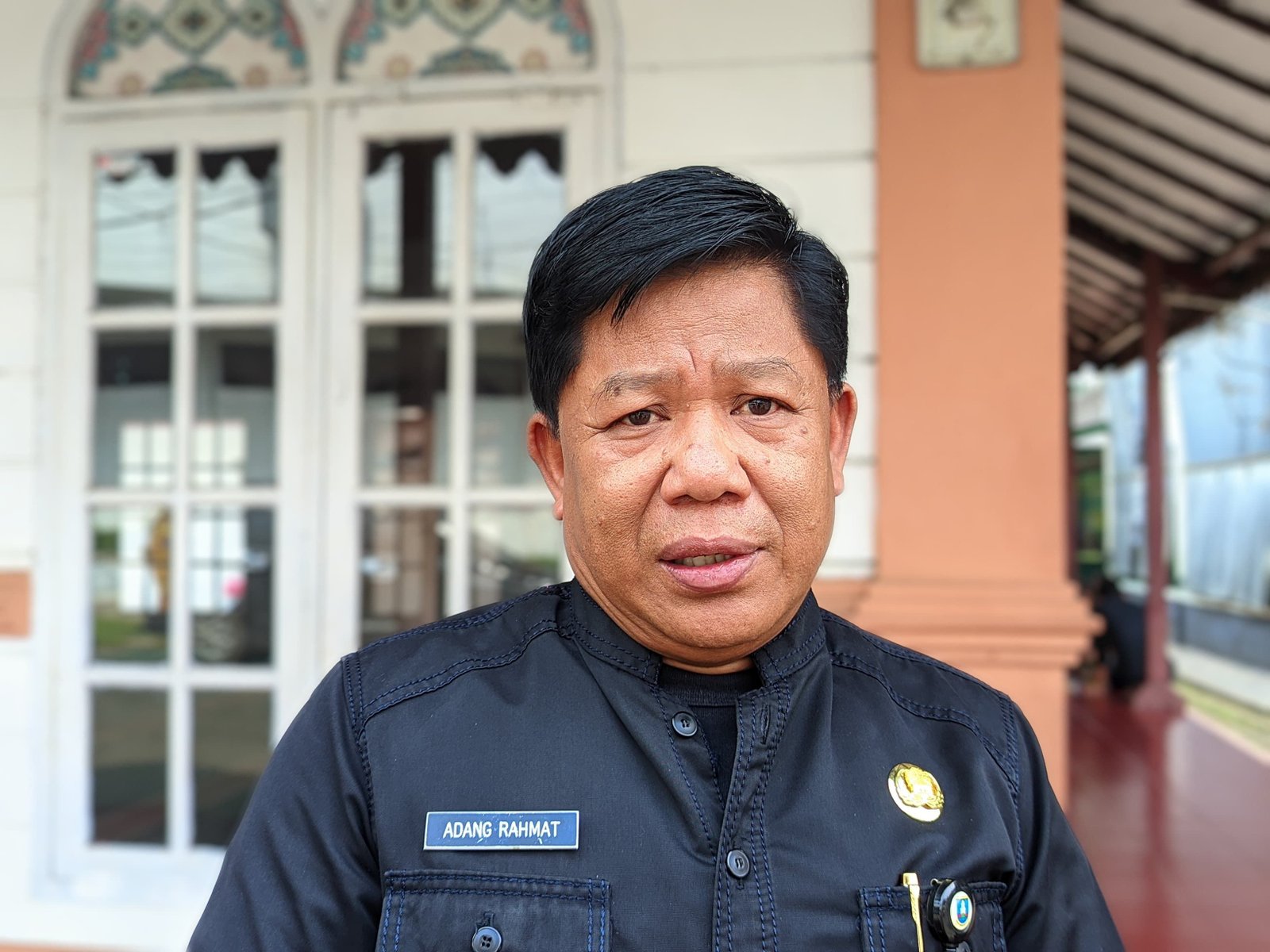 Kepala Dinas Koperasi UMKM Perindustrian dan Perdagangan (Diskoumperindag) Kabupaten Serang Adang Rahmat saat diwawancarai, Jumat (13/6). Andika/Bantenraya.com