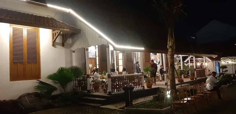 Sundanese Food and Coffeeshop Roemah Prestasi yang berlokasi di Magersari, Kota Serang, Banten, menghadirkan makanan khas Sunda dengan konsep bancakan, Kamis, 28 Oktober 2021. Tempat makan ini baru akan buka dan melayani pembeli pada awal November nanti. M Tohir/ Banten Raya