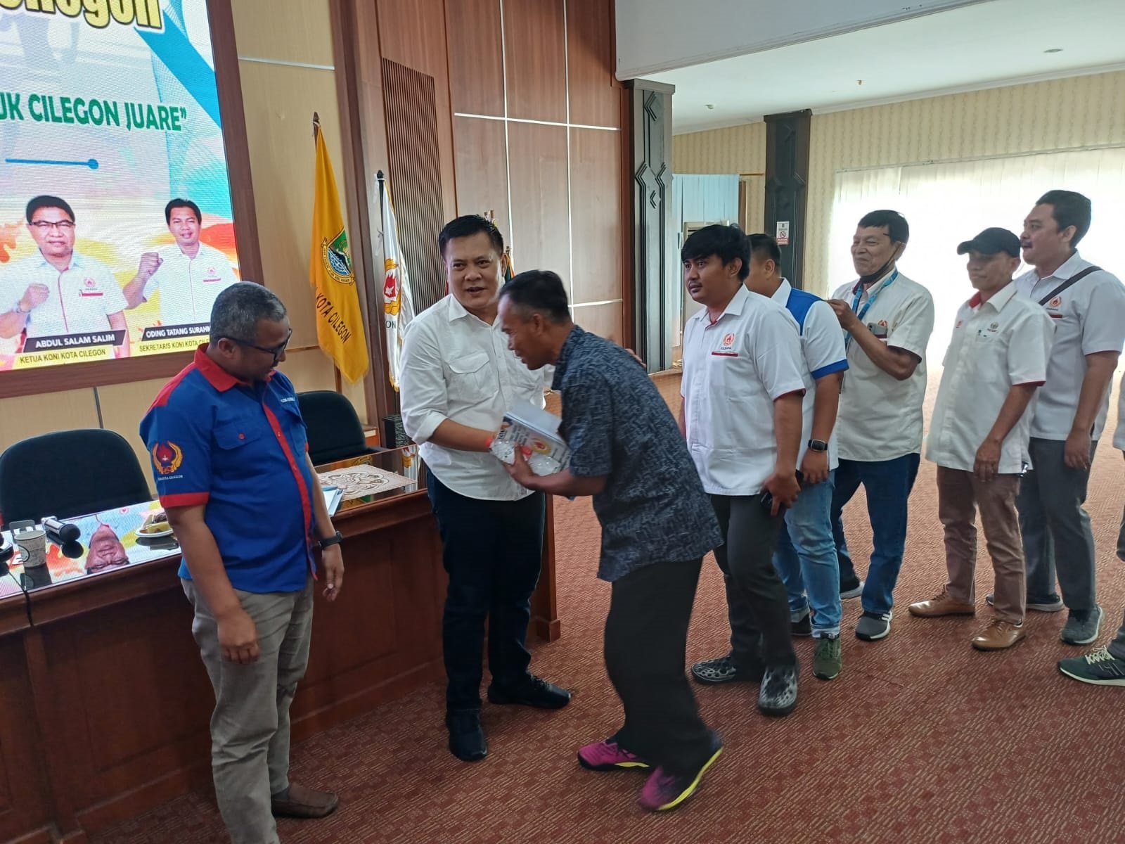 Ketua KONI Cilegon mendapatkan ucapan selamat. (hendra/banten raya)