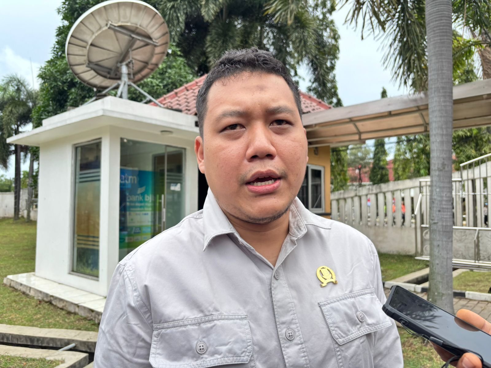 Ketua DPRD Cilegon Rizki Khairul Ichwan saat diwawancarai terkait proses peminjaman dana untuk JLU, Kamis (2/10). (Tia/Banten Raya)
