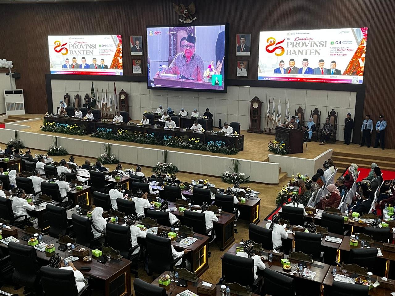 BANTENRAYA.COM – Gubernur Banten Andra Soni memberikan sambutan dalam Rapat Paripurna DPRD Banten yang digelar dalam rangka peringatan Hari Ulang Tahun atau HUT Provinsi Banten ke-25 pada Sabtu, 4 Oktober 2025 di Kawasan Pusat Pemerintahan Provinsi Banten atau KP3B, Kota Serang.