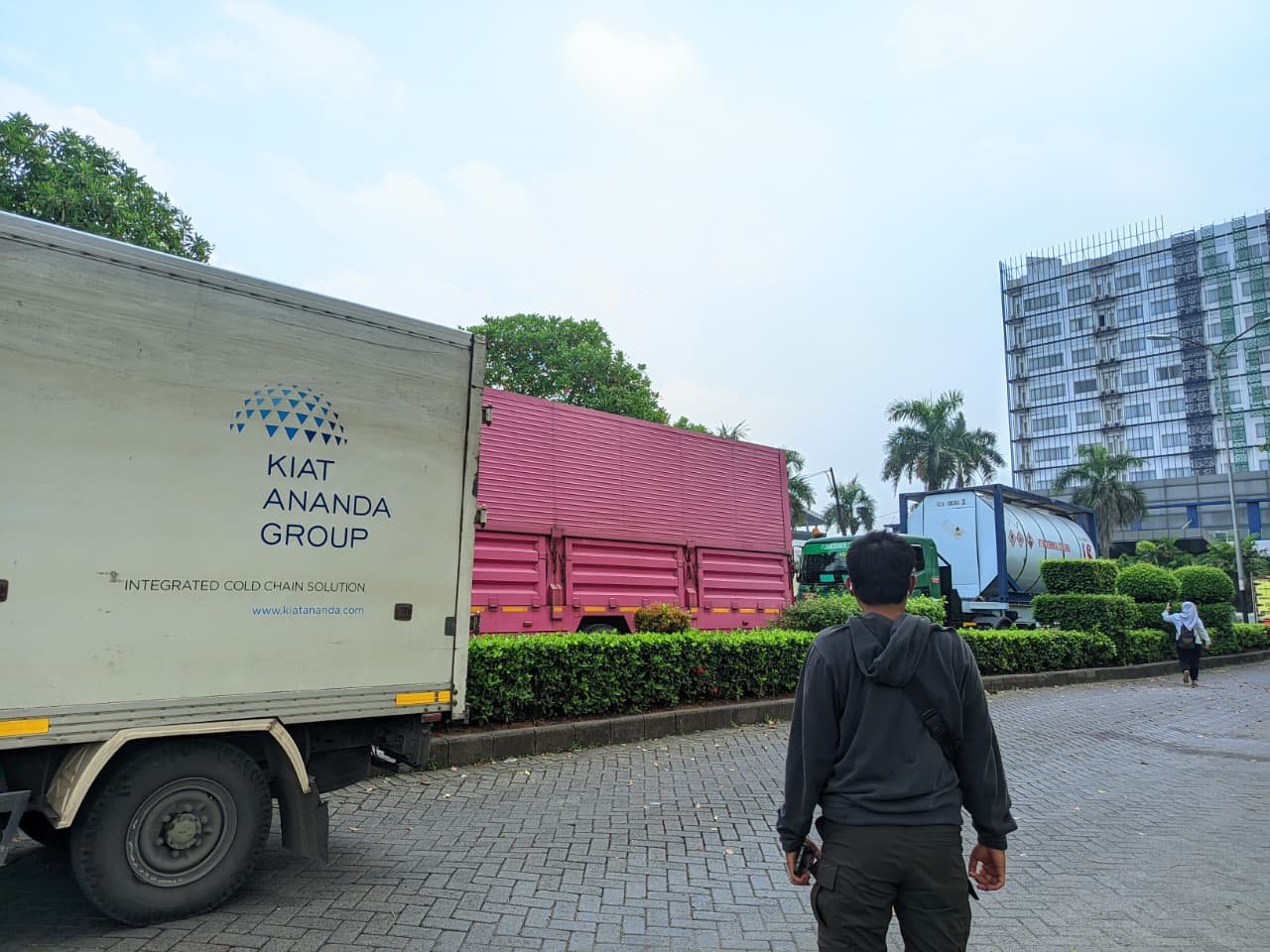Tim Gegana Polri sudah menyediakan portal keluar masuk supaya truk-truk dapat dilakukan pemeriksaan oleh petugas.