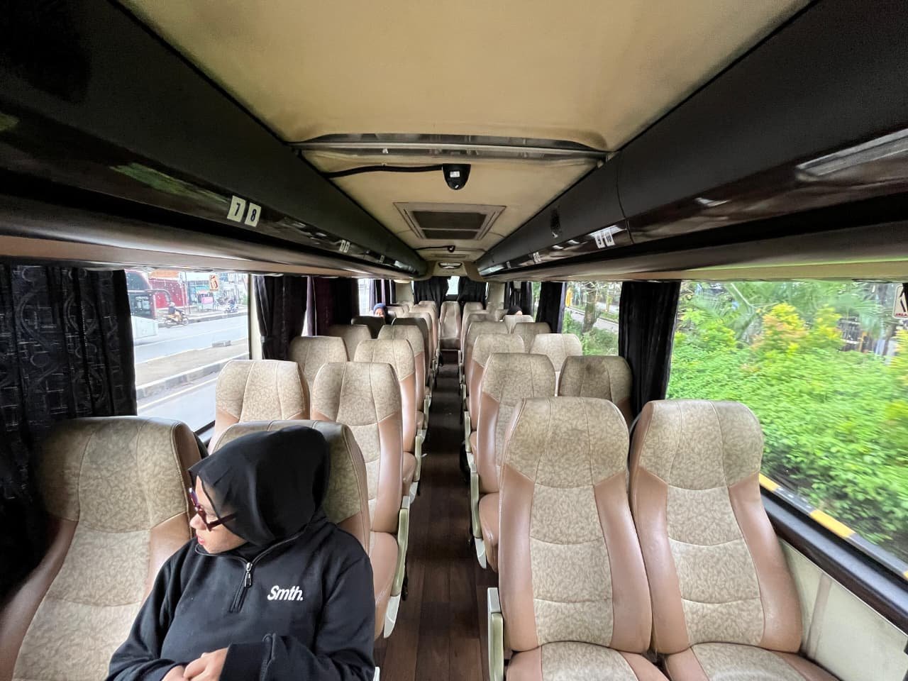 Kondisi di dalam bus trans banten saat tim Banten Raya mencoba pada Selasa, 7 Oktober 2025 pukul 14.00 WIB. (Raffi/Bantenraya.com)