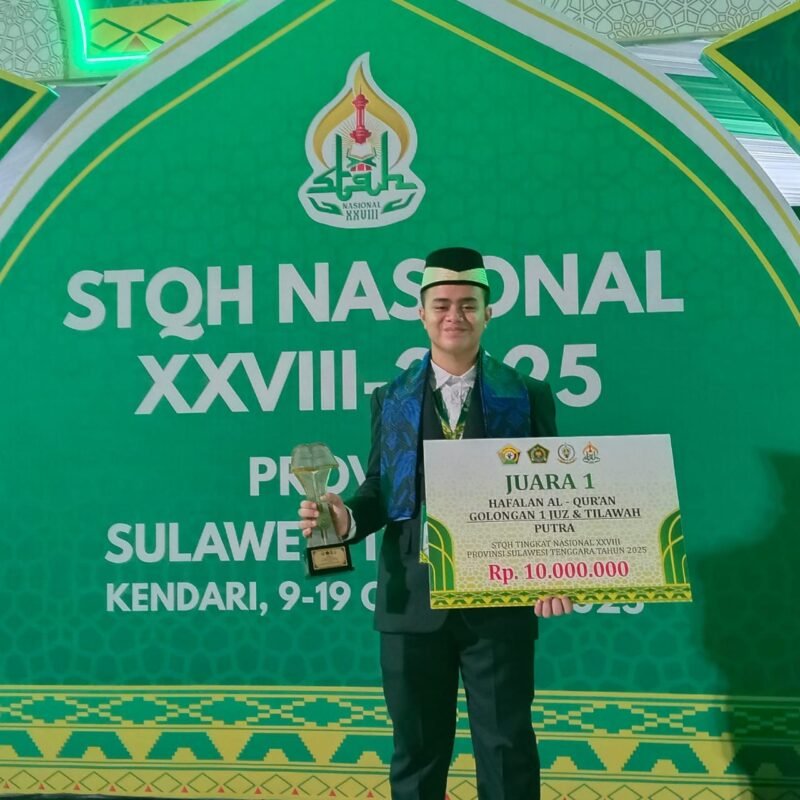 Muhammad Alvino Dinofa usai meraih Juara 1 pada STQH Nasional pada pekan lalu. Dok: Muhammad Alvino Dinofa