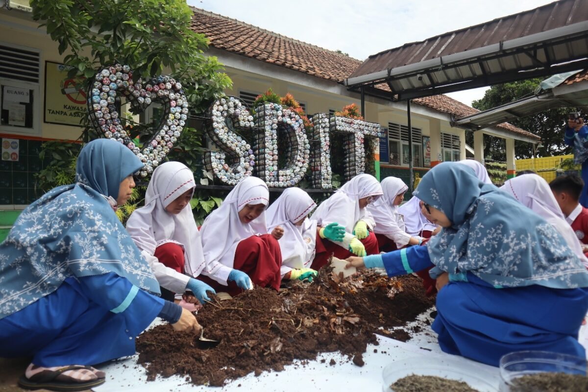 Bibit cabai tersebut ditanam menggunakan pupuk kompos buatan sendiri yang telah melalui proses pengolahan cukup lama. Selain itu, kegiatan ini juga memanfaatkan galon bekas yang dipotong menjadi pot tanaman, sebagai solusi kreatif atas keterbatasan lahan sekolah.