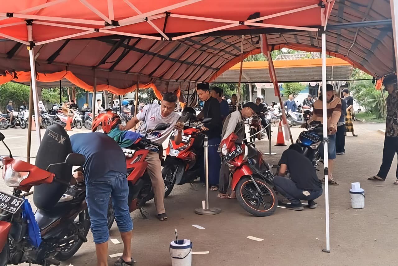 Pelayanan cek fisik kendaraan roda dua di Kantor Samsat Kota Serang, Rabu 29 Oktober 2025. Pelayanan Samsat bakal dibuka hingga malam jelang penutupan program pemutihan pajak kendaraan bermotor. (Raffi/Bantenraya.com)