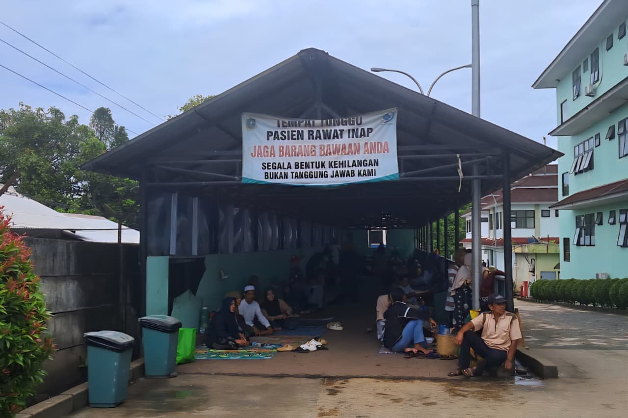 Andra menilai, ruang tunggu tersebut merupakan bangunan setengah terbuka dengan atap sederhana. Sejumlah keluarga pasien tampak menunggu di area tersebut dengan menggelar tikar di atas lantai paving block.