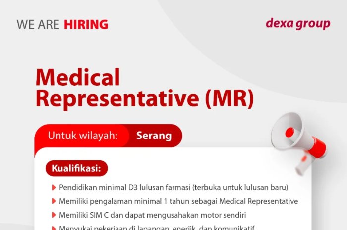 Posisi yang dibuka kali ini adalah Medical Representative (MR) untuk penempatan di wilayah Serang dan sekitarnya.