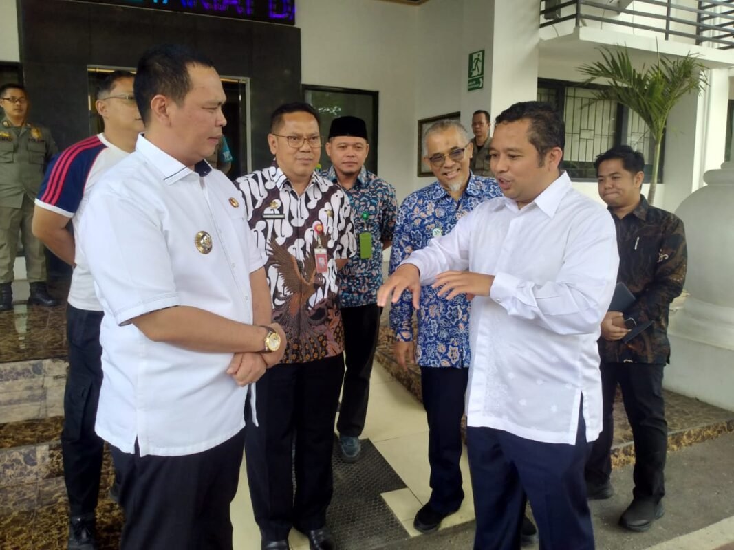 Arief Rachadiono Wismansyah disambut hangat Budi Rustandi, dan berbincang di ruang rapat Walikota di Setda lantai 2, Puspemkot Serang, Kota Serang, Jumat 7 November 2025.