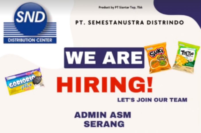 Dikutip dari Instagram @gateid, saat ini PT Semestanustra Distrindo membuka lowongan kerja untuk posisi Admin ASM (Area Sales Manager) penempatan Serang, Banten.