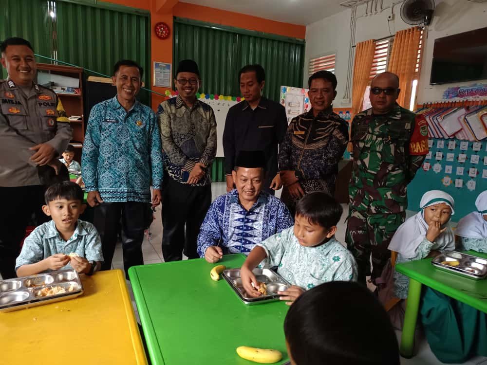 Ketua Satgas Pengawasan MBG Kabupaten Serang Muhammad Najib Hamas meninjau proses pembagian menu MBG di SDIT Ibadurrahman, Kecamatan Ciruas, Kamis 13 November 2025. (Andika/BAntenraya.com)