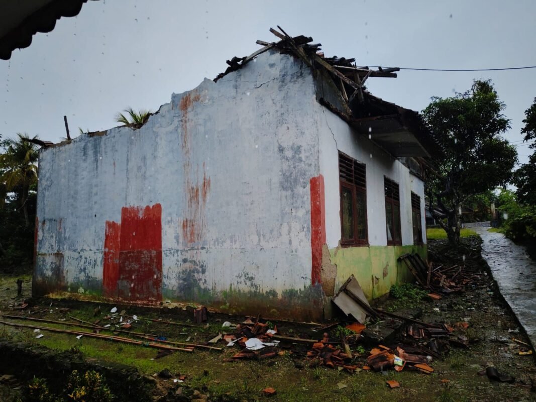Penyebabnya, karena kondisi bangunan sudah rusak, ditambah diterjang cuaca buruk. “Itu bangunan perpustakaan. Bangunan ini sudah lama tidak digunakan. Jadi ambruk,” kata Dindin.