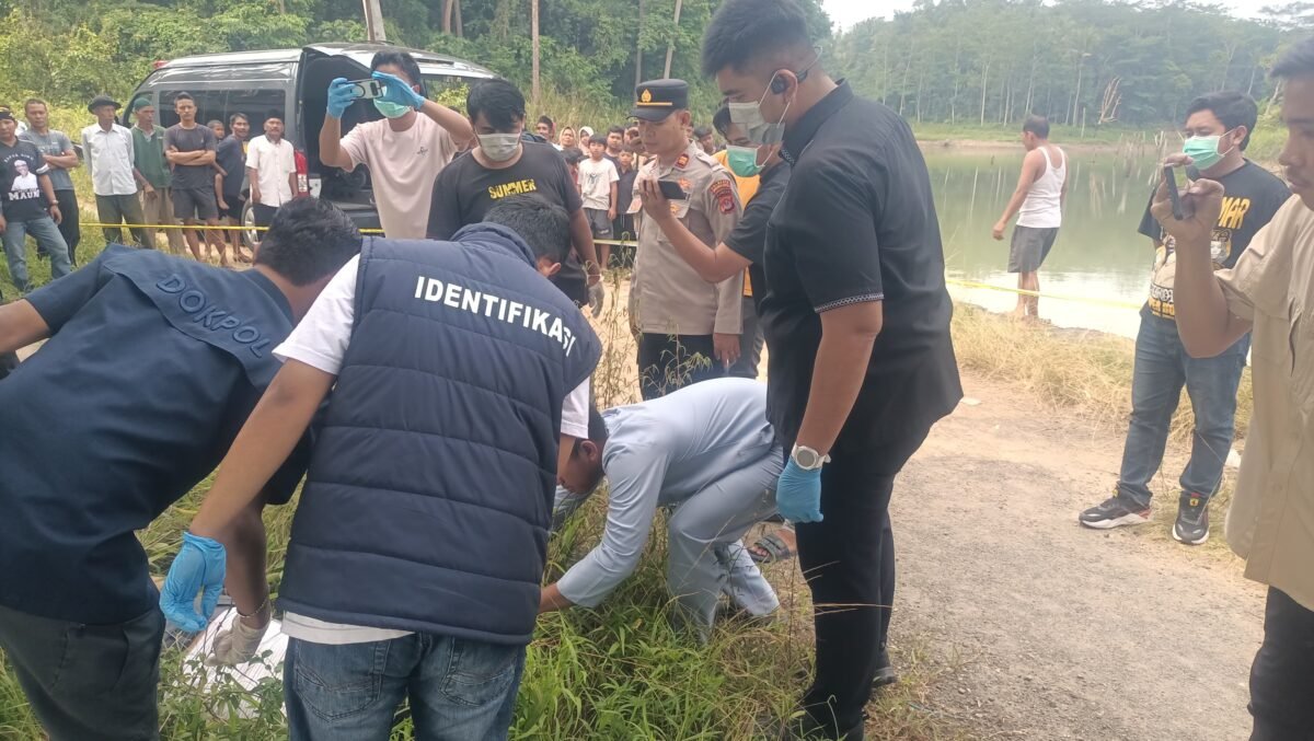 Korban ditemukan dalam kondisi tengkurap dengan kedua tangan terikat menggunakan tali ties. Adapun pakaian yang dikenakan korban berupa baju berwarna putih dengan corak garis hitam serta celana pendek berwarna abu-abu.