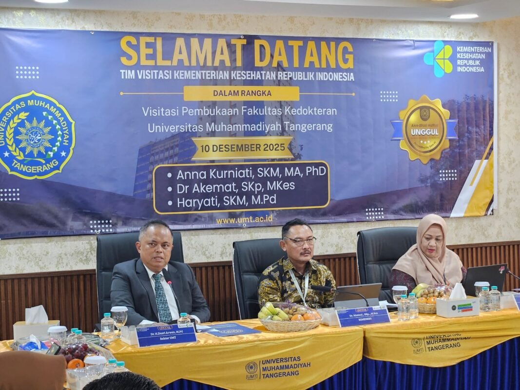 BANTENRAYA.COM – Direktorat Jenderal Tenaga Kesehatan Kementerian Kesehatan RI (Kemenkes) mendatangi Universitad Muhammadiyah Tangerang (UMT), Rabu 10 Desember 2205. Kedatangan tim tersebut dilakukan dalam rangka memverifikasi kesiapan sumber daya dan fasilitas untuk pembukaan Fakultas Kedokteran (FK) di lingkungan UMT.