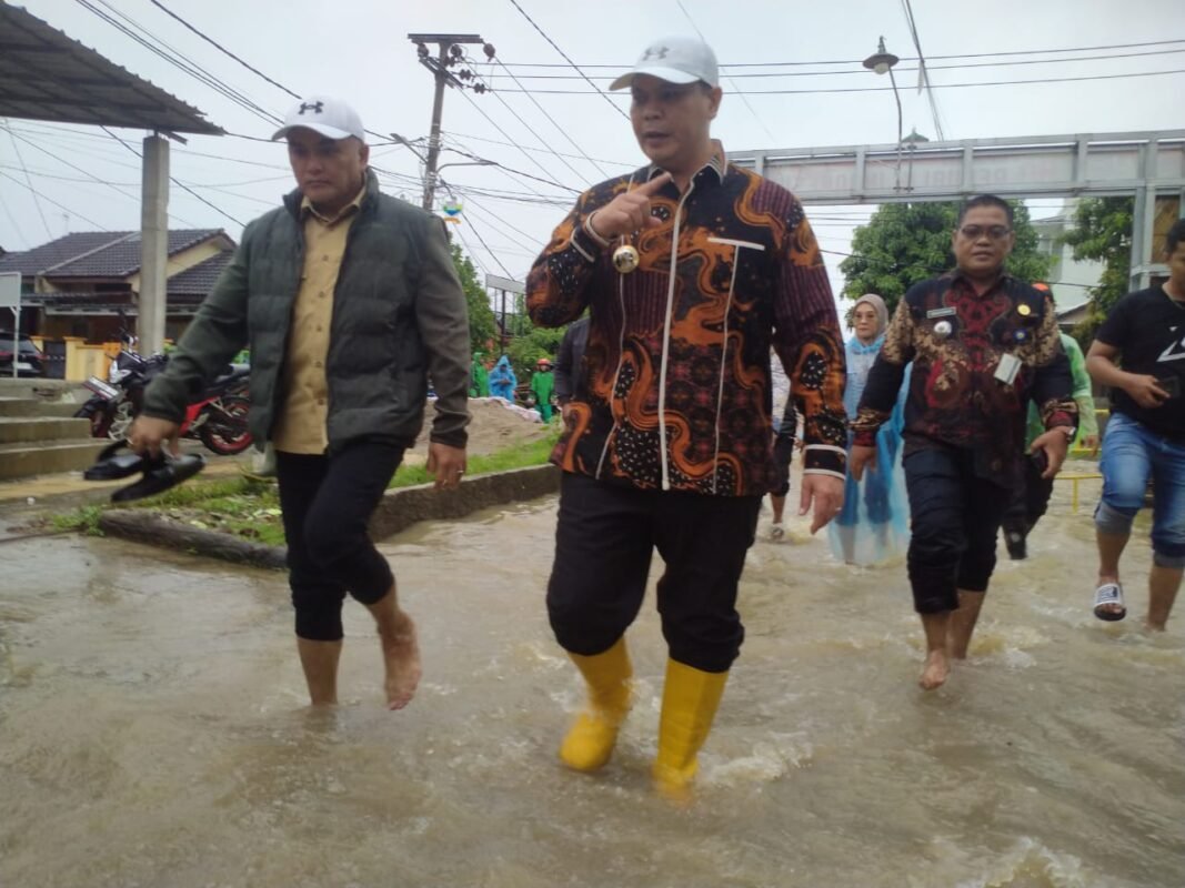 BANTENRAYA.COM – Walikota Serang Budi Rustandi hujan-hujanan tinjau lokasi banjir di Kota Serang, Kamis 18 Desember 2025.
