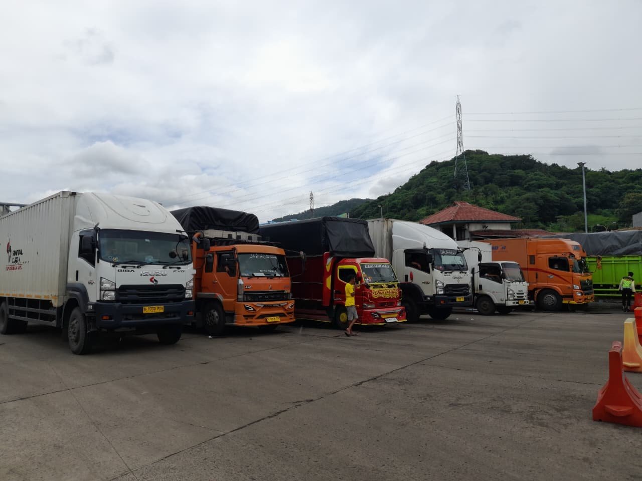 BANTENRAYA.COM – Puluhan truk memadati Jalan Cikuasa Atas dan Dermaga Ekselutif Pelabuhan Merak, Jumat 19 Desember 2025.